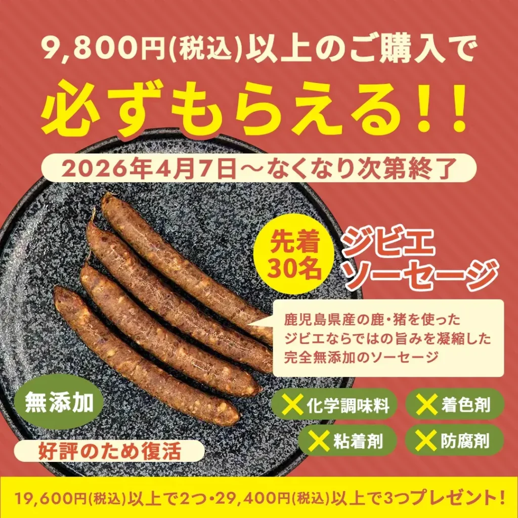 好評につき復活!必ずもらえる「ジビエソーセージ」プレゼントキャンペーン!